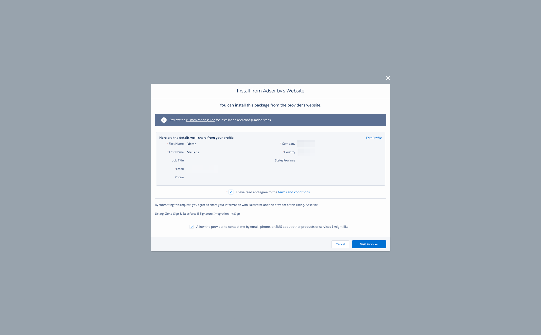 Please fill out the form and then click Visit Provider. This will direct you to access the installation page.