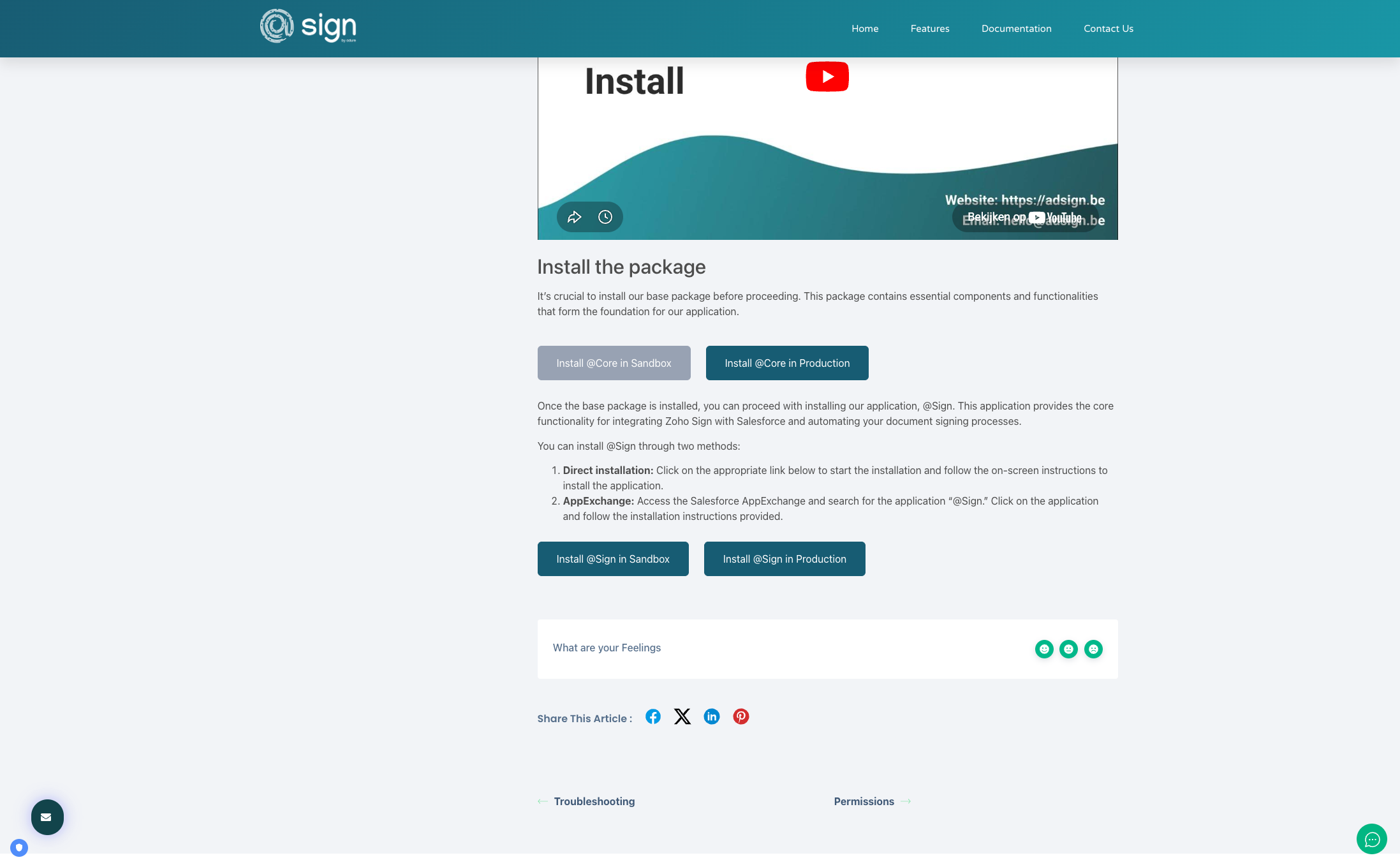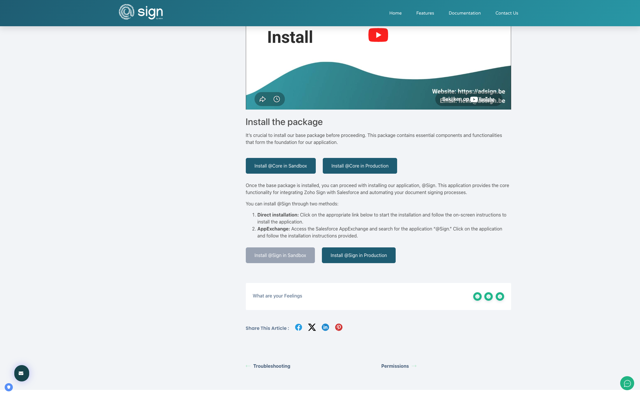 To initiate the installation, please go to the @Sign listing on the Salesforce AppExchange