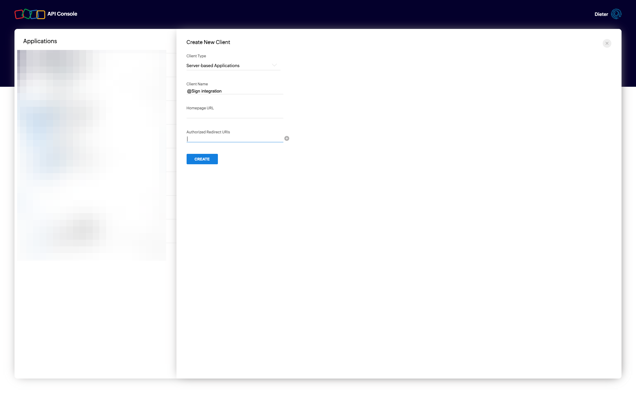 Back on the setting page, press "Create Client ID and Secret in Zoho API Console"