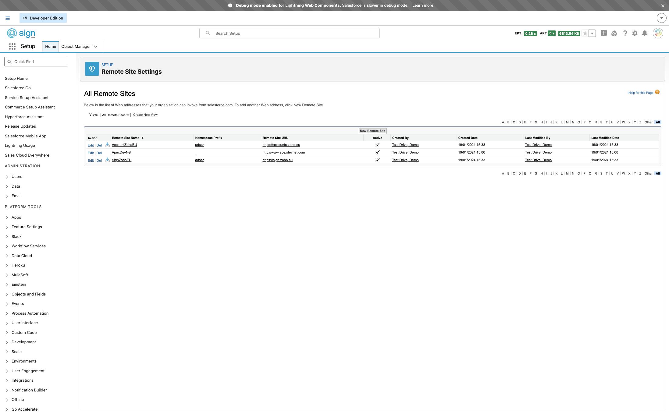 By default the remote site settings for the EU datacenter is installed. If you are in a datacenter other than the EU, you need to configure extra remote site settings. Open the link in a new tab.