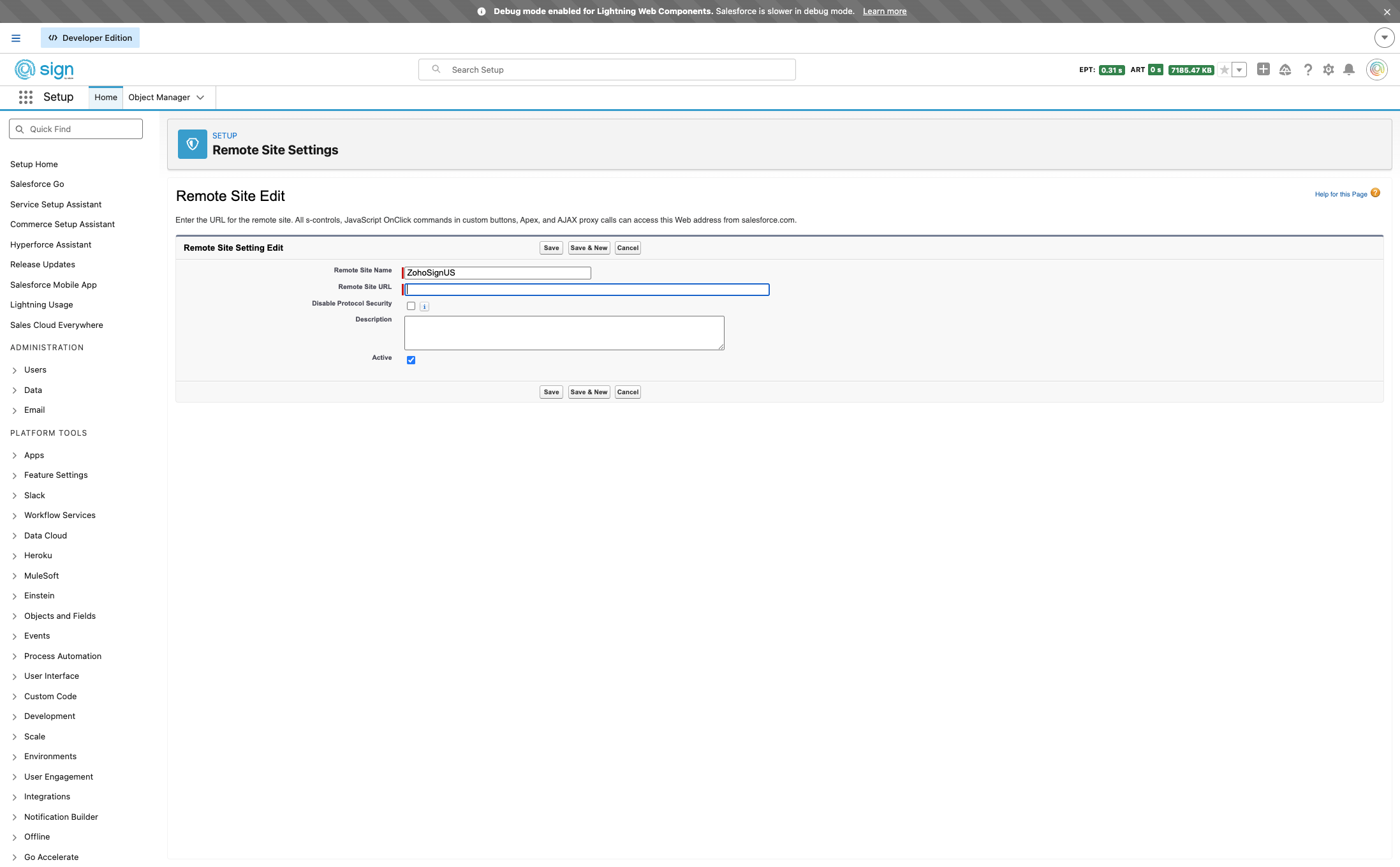 Remote Site Settings (only for non EU setups)