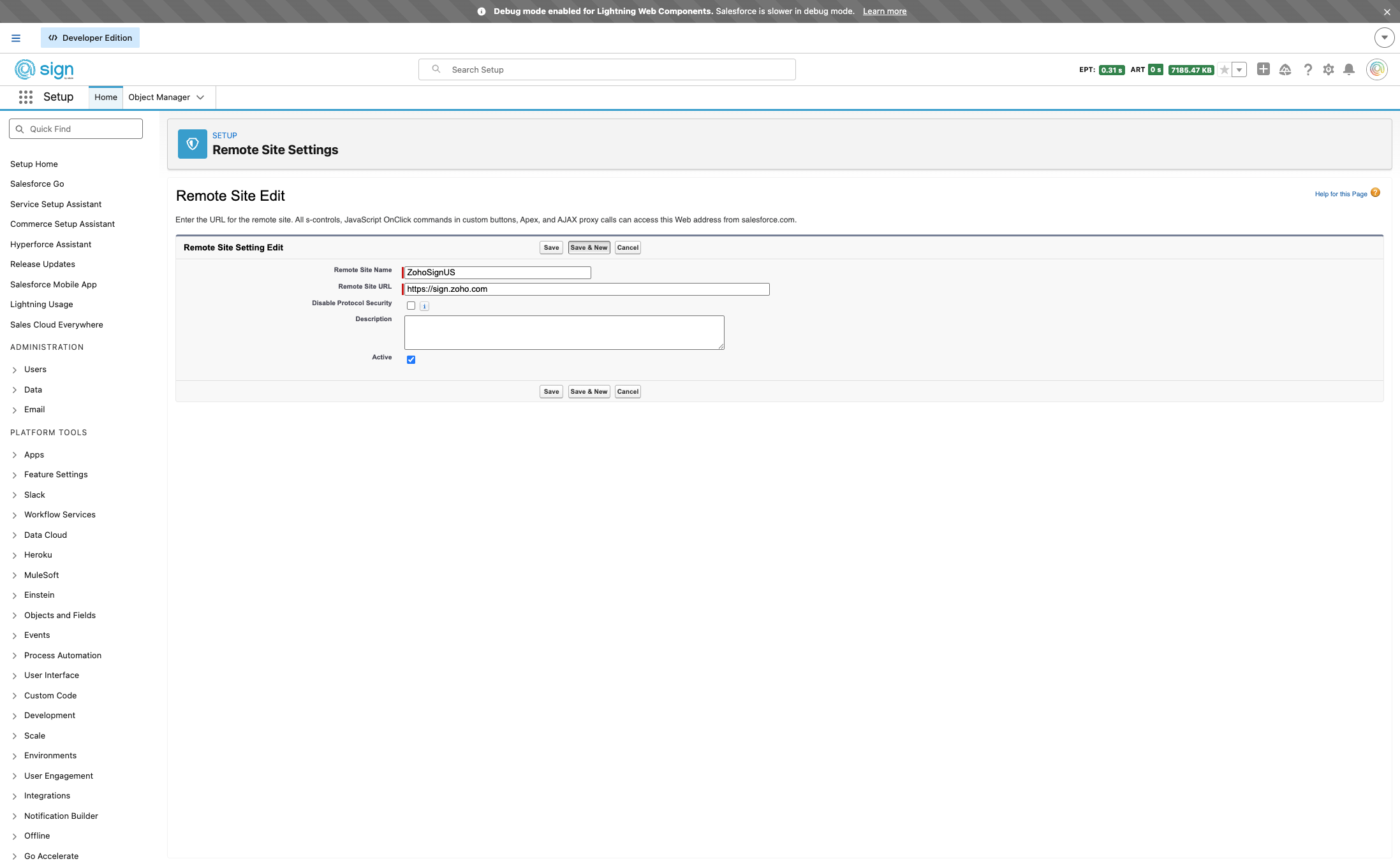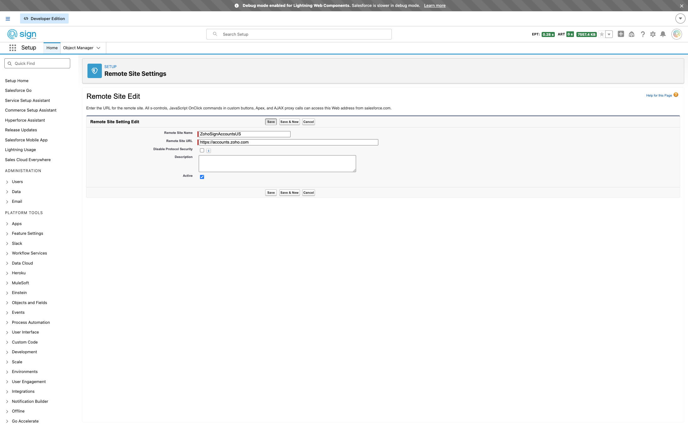 Give the setting a name, it can not contain spaces. We will call it "ZohoSignUS"