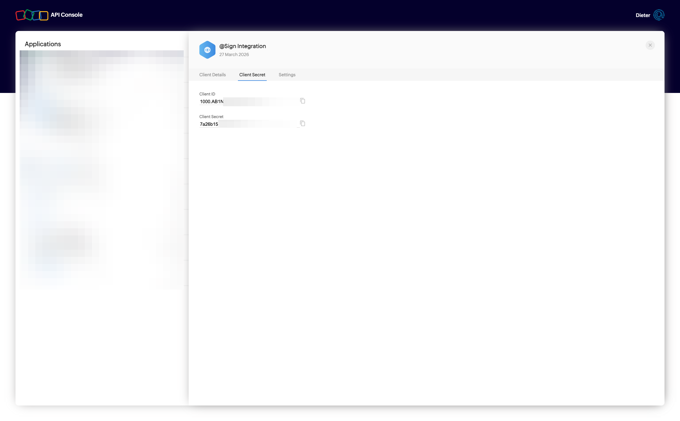 Copy the Client ID and secret